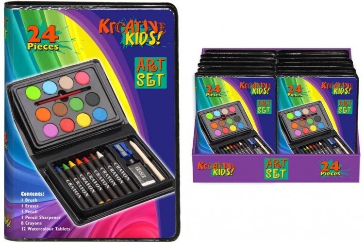 Kreative Kids Child's Craft Art Set Artist Crayons Paints Pencil Set of 24
