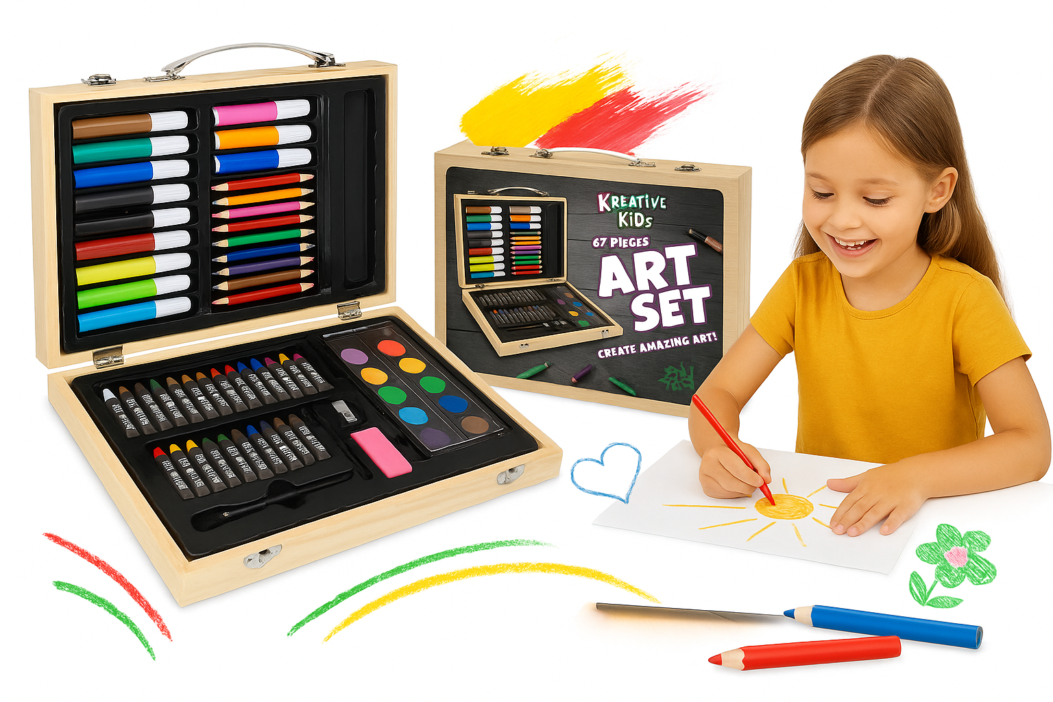 Kreative Kids 67 Piece Traditional Wooden Kids Art Set