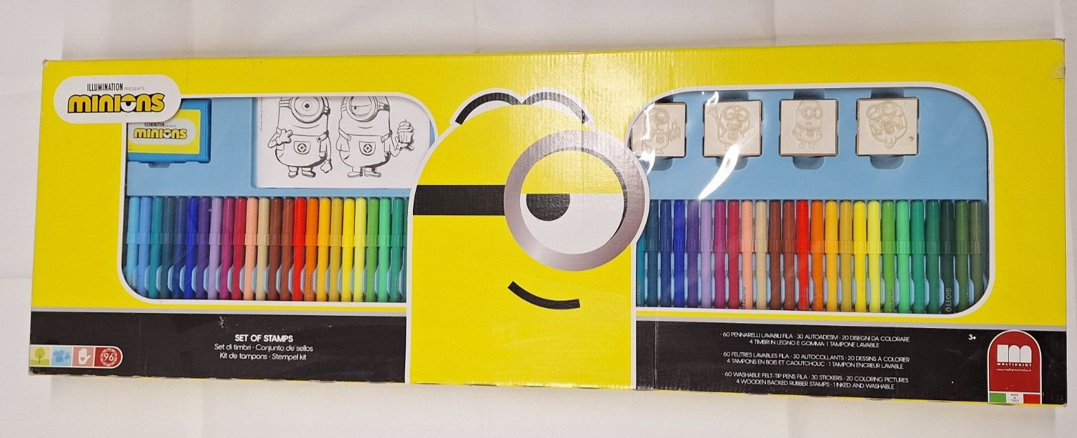Jumbo Minions Kids Art Colouring Craft Set 96pcs Stamps Felt Tip Pens Stickers