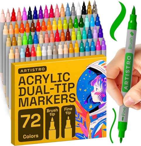 ARTISTRO 72 Acrylic Paint Pens – Dual Tip (Brush & Fine) Markers, Multicolor for Fabric, Canvas, Rock, Glass, Wood & Paper – Great DIY & Gift for Kids, Teens - Art Set