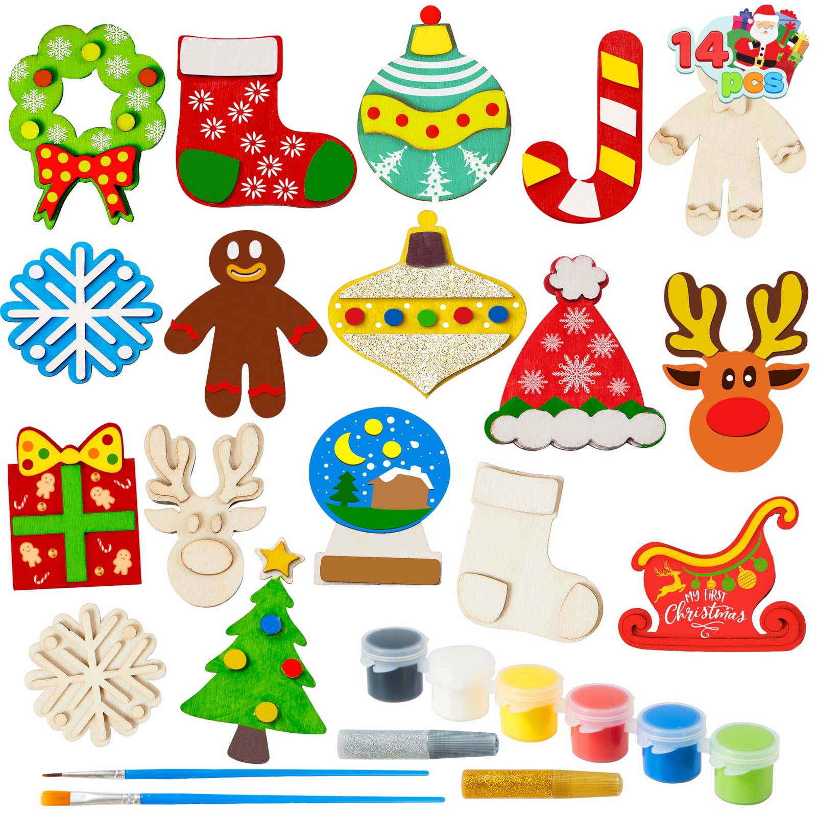 14 Wooden Christmas Magnet Painting Craft Kit Kids DIY Fridge Art Set