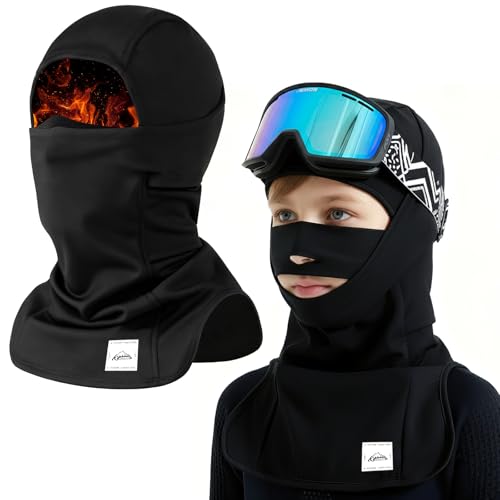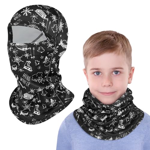 TRIWONDER Kids Winter Balaclava, Thermal Fleece Windproof Face Cover Hood & Neck Warmer for Boys Girls Skiing Cycling Snowboarding Hiking (Black)