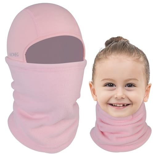 TRIWONDER Kids Winter Balaclava, Thermal Fleece Windproof Face Cover Hood & Neck Warmer for Boys Girls Skiing Cycling Snowboarding Hiking (Pink)
