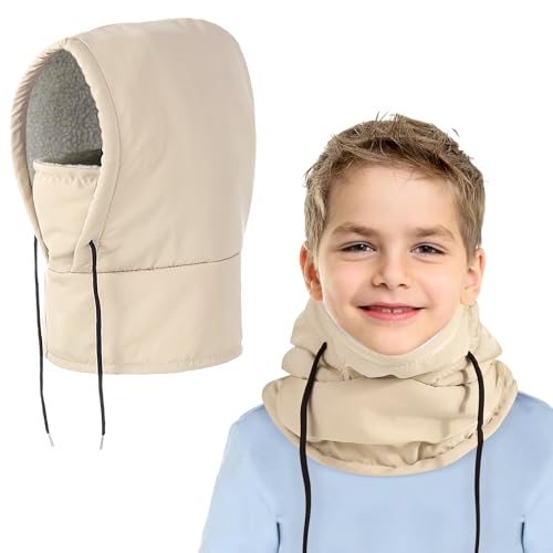 TRIWONDER Kids Winter Balaclava, Thermal Fleece Windproof Face Cover Hood & Neck Warmer for Boys Girls Skiing Cycling Snowboarding Hiking (Light Grey)