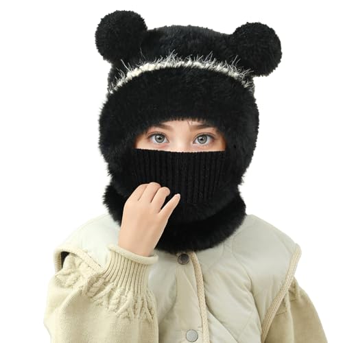 YQXCC Kids Winter Hats Balaclava Ski Mask Windproof Warm Adjustable with Fleece Lining Hat for Boys Girls Black