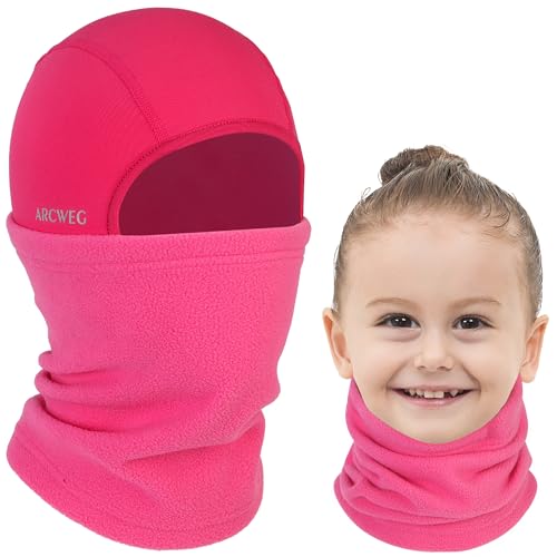 Arcweg Kids Thermal Fleece Balaclava Neck Warmer Winter Windproof Face Hood Mask Fits Under Helmets for Boys Girls in Winter for Skiing, Running, Cycling Rose red
