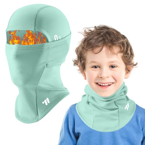 TRIWONDER Kids Winter Balaclava, Thermal Fleece Windproof Face Cover Hood & Neck Warmer for Boys Girls Skiing Cycling Snowboarding Hiking (Green)