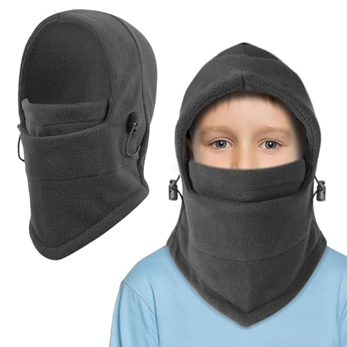 TRIWONDER Kids Winter Balaclava, Thermal Fleece Windproof Face Cover Hood & Neck Warmer for Boys Girls Skiing Cycling Snowboarding Hiking (Grey)
