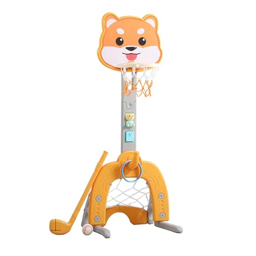 iZEL Kids Basketball Hoop Kids Set-3 in 1 Toddler Basket Ball for Children-Indoor and Outdoor Sports Game Soccer Ball & Golf Stand-Baby Boys, Girls Home, Garden Activity Portable Gift (Yellow Lion)