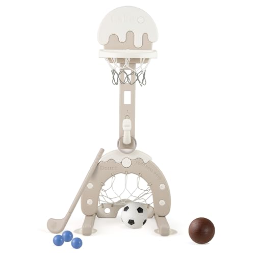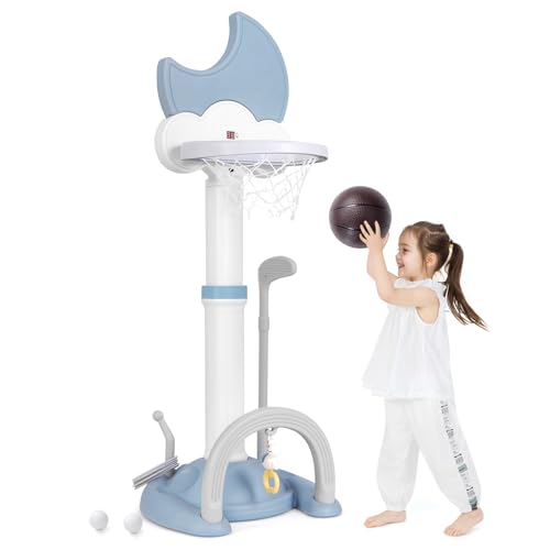 Warmiehomy Basketball Hoop for Kids Indoor Basketball Hoop and Stand Toddler Basketball Hoop Outdoor Child Football and Basketball Set with Football Goal, Golf, Ring Toss, Story Player, Birthday Gift