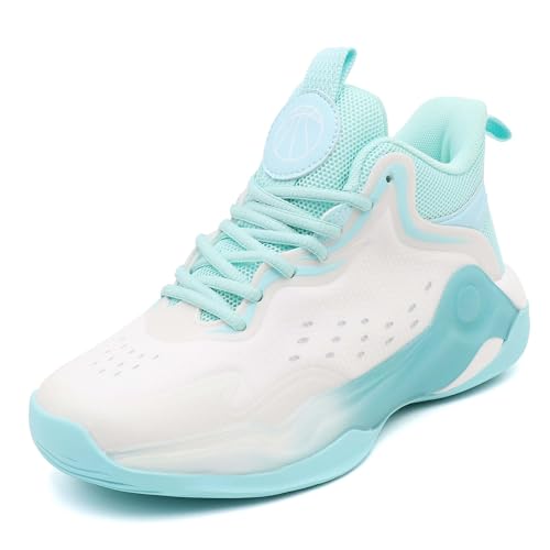 Hixingo Kids Basketball Shoes, Boys Basketball Trainers Girls Comfort Tennis Running Trainers Sneaker High Top Breathable Children's Sport Shoes Lightweight Non-Slip for Unisex 2.5 UK Turquoise Blue