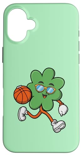 Funny St Patrick's Day Shamrock playing basketball kids boys Case for iPhone 16 Plus