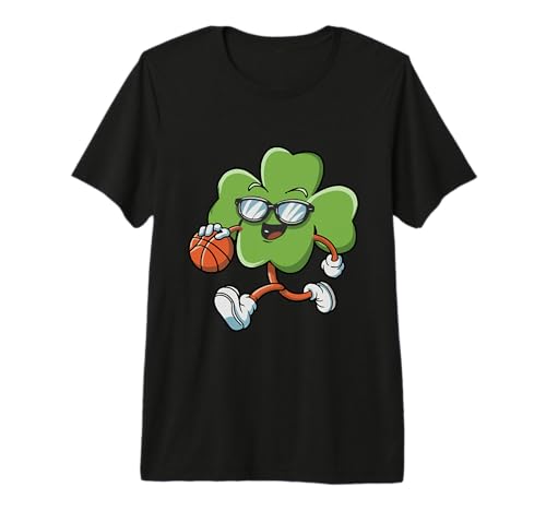 St Patricks Day Funny Shamrock Playing Basketball Kids Boys Premium T-Shirt