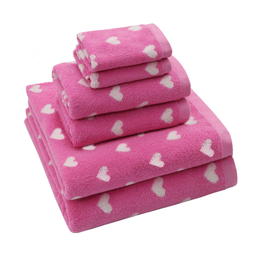 ORIGINAL KIDS 6 Piece Towel Set - Bath Time Hearts - 2 Bath Towels 2 Hand Towels 2 Washcloths - 100% Cotton Jacquard Colorful Soft Absorbent Pool B