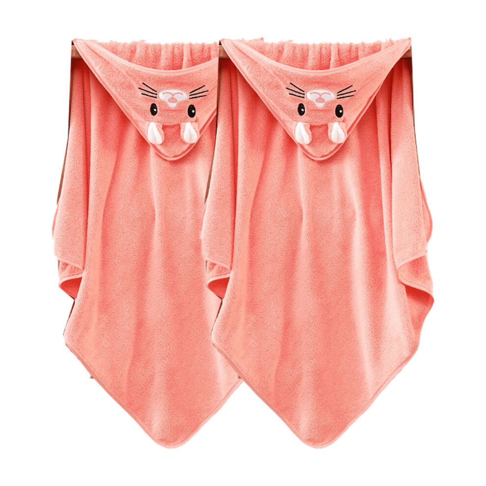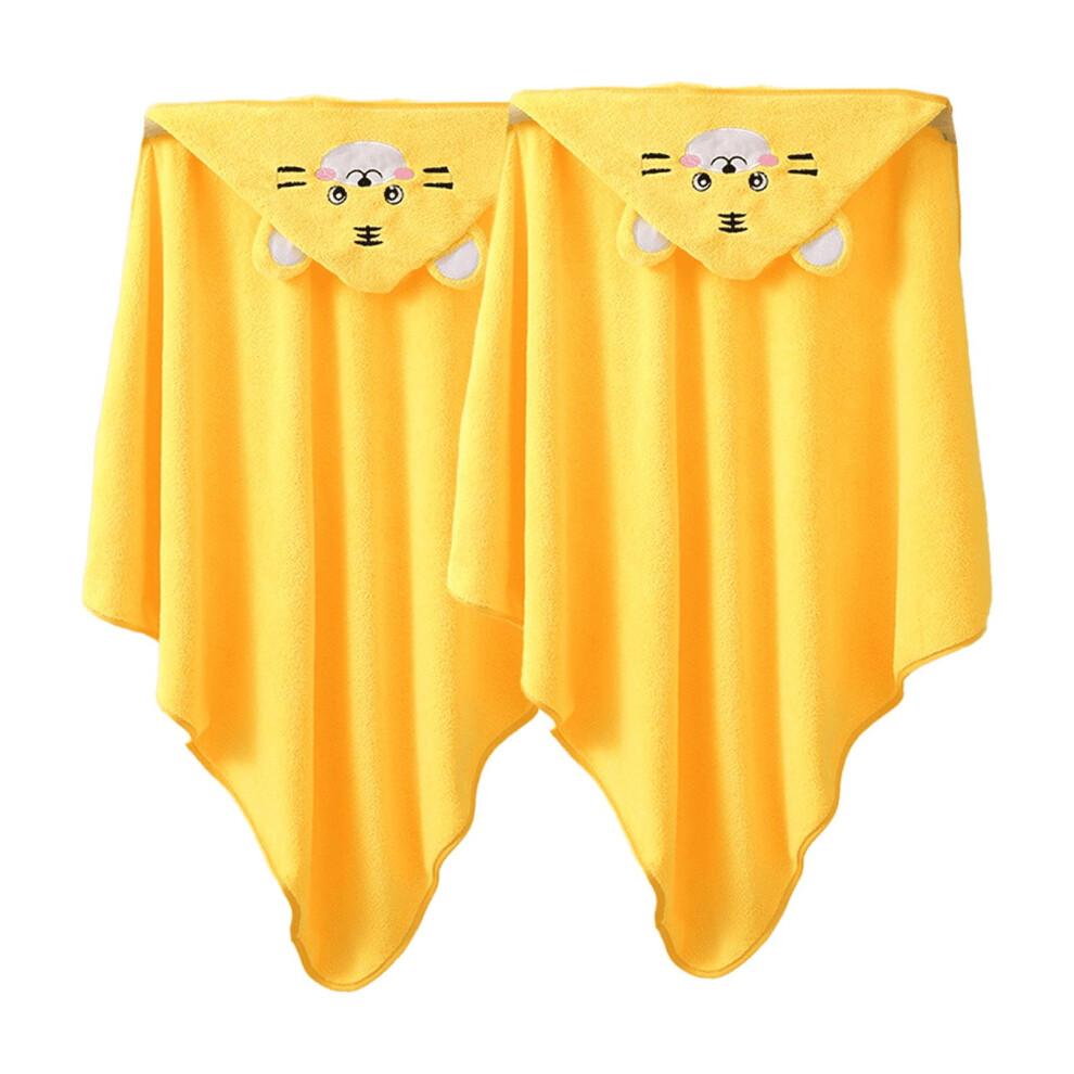 2Pcs Hooded Kids Bath Towels Soft Absorbent Cartoon Design