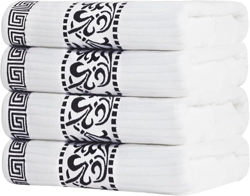 Superior 4-Piece Bath Towel Set, Greek/Floral Decor for Bathroom, Guest Bath, Spa, Resort, Home Essentials, Absorbent Cotton, Adults and Kids, Fast Drying Towels, Athens Collection, Black