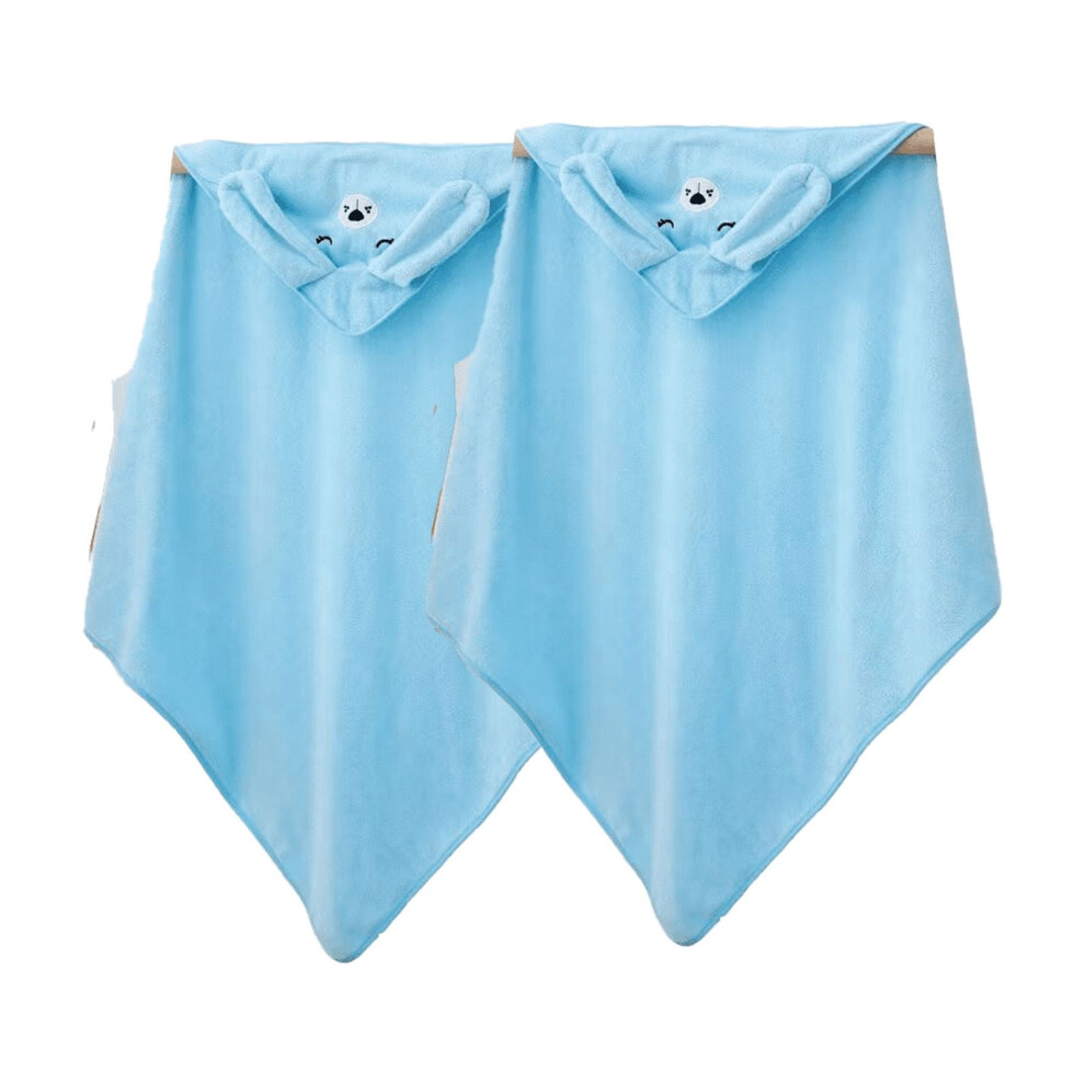 AUQ Hooded Baby Towels,31"31" Cloud-Like Coral Fleece Kids Bath Towels,Windproof Triangular Hood Body Towel Wrap,Blue