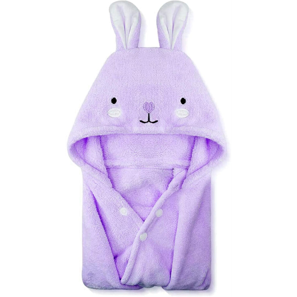 (As show, One size) Kids Bath Towels,Premium Hooded Towel for Toddlers Highly Absorbent Coral Fleece Bathrobe-27.5" x 55" Purple-rabbit-shap