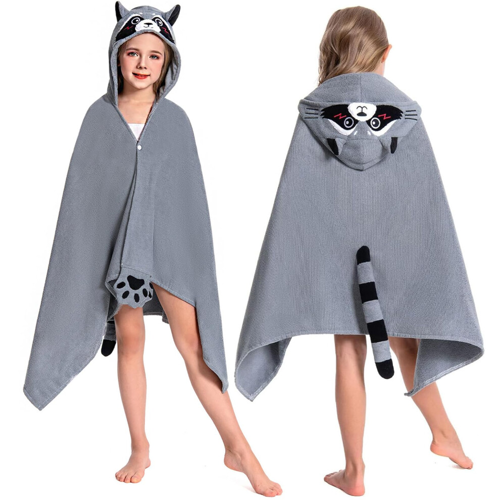 OLAOLA Kids Hooded Bath Towels, Soft Absorbent Beach Towel Swimming Wrap, Changing Robe Bath Poncho for Boys Girls 3-12 Years, Raccoon