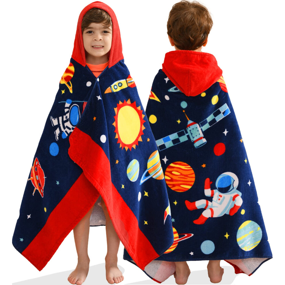 VOOVA & MOVAS Kids Hooded Bath Towels | Soft Thick Absorbent Cotton (30X50 inches) Beach Bath Pool Towels with Hood Oversized for Boys Ages 3-10 for