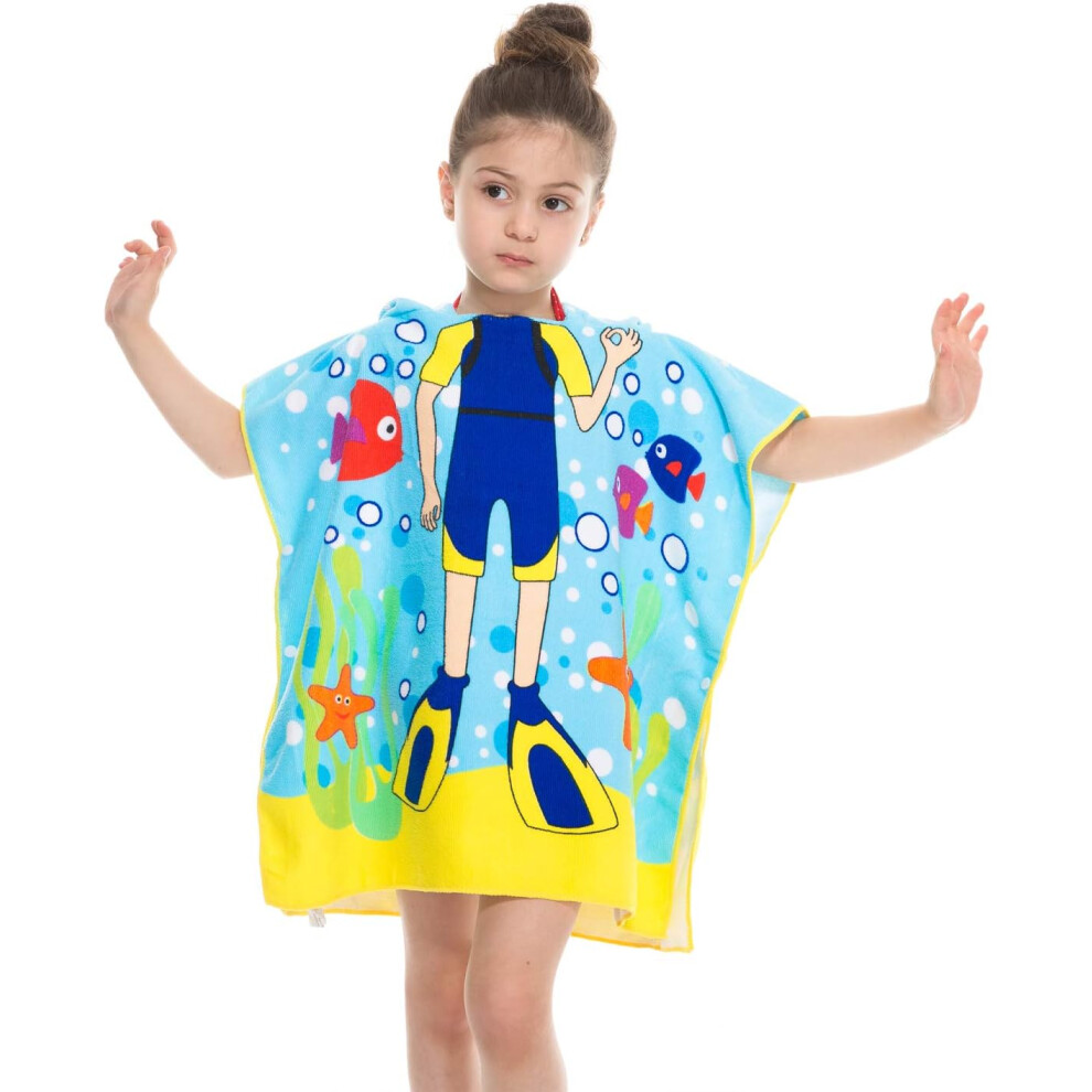 Brentfords Kids Swim Changing Robe, Soft Absorbent Oversized Hooded Towel Poncho for Beach Pool Travel Children Bath Towels Quick Dry Lightweight Swimming Towels, Sea Blue