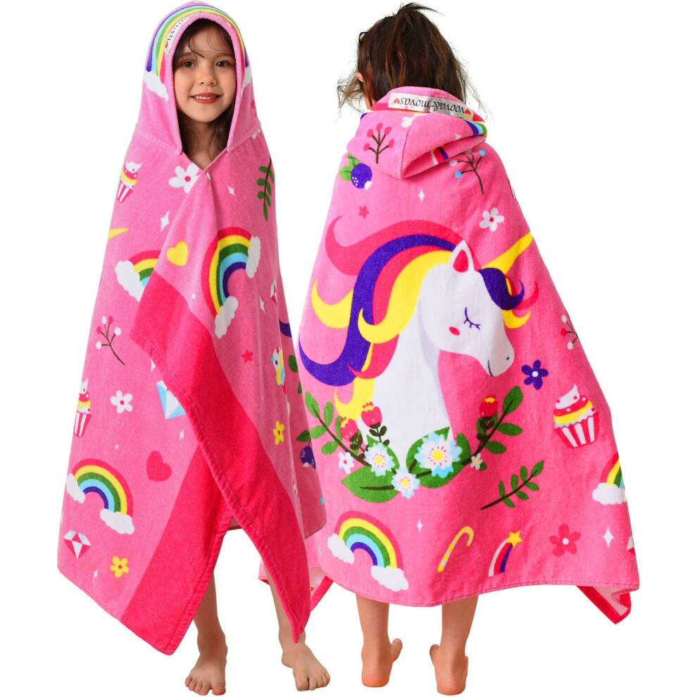 VOOVA & MOVAS Large Oversized Kids Hooded Bath Towels | Soft Thick Absorbent Cotton (30X50 inches) Beach Bath Pool Towels for Girls Ages 3-10 for To