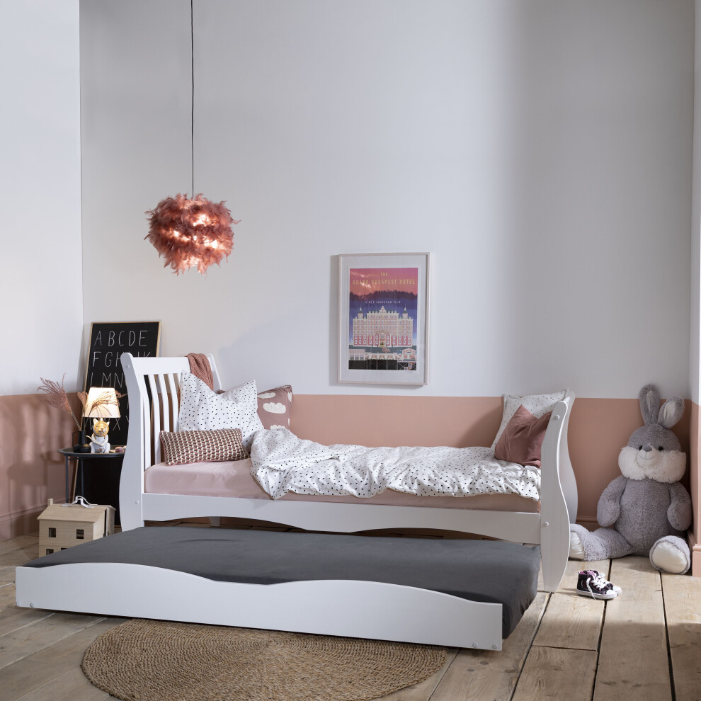 Noa and Nani Single 3ft Kids Sleigh Bed with Pullout Trundle in White Astrid