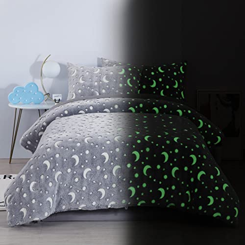 HOMBYS Glow in The Dark Comforter Set 5 Piece Twin/Twin XL with Sheets, Grey Velvet Bedding Comforter Sets for Twin Bed, Ultra Soft Down Alternative Comforter for Teenage Boys Kids, Bed in a Bag