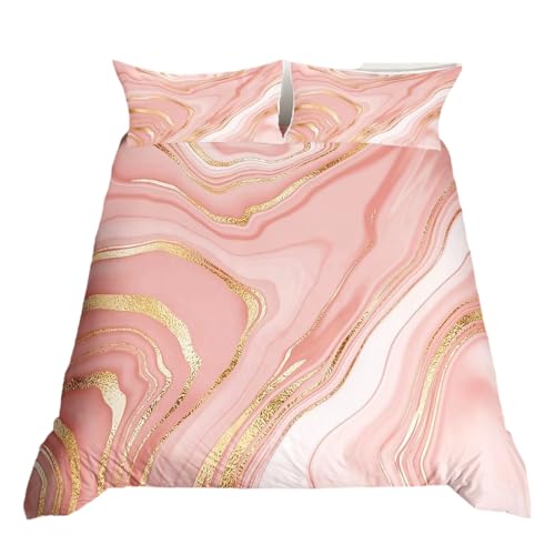 Pink Golden Marble Duvet Cover for Kids Boys Girls,Metallic Marble Bedding Set King,Gradient Marble Texture Comforter Cover,Abstract Art Bed Sets with 2 Pillowcases Bedroom Decor