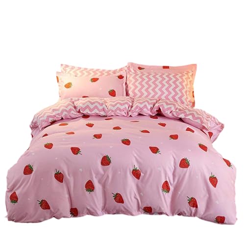 Homewish Kawaii Bedding Pink Strawberry Decor Comforter Cover Set For Women Girls Kids Kawaii Room Decor Cute Strawberry Bedding Sets Soft Reversible Cute Kawaii Strawberry Duvet Cover Single Size
