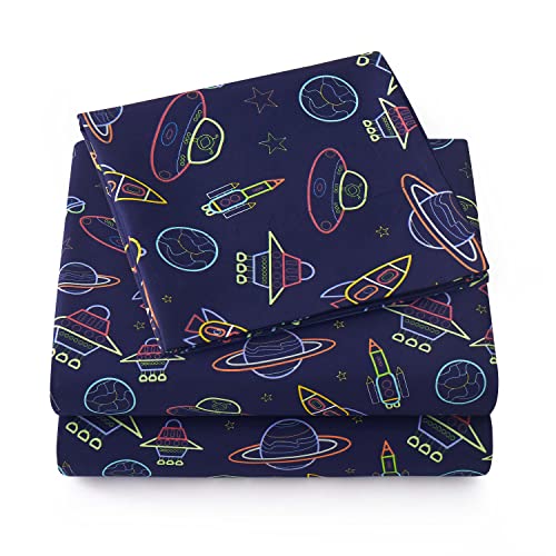 1500 Supreme Kids Bed Sheet Collection - Fun Colorful and Comfortable Boys and Girls Toddler Sheet Sets - Deep Pocket Wrinkle Free Soft and Cozy Bedding - Twin, Neon Spaceships