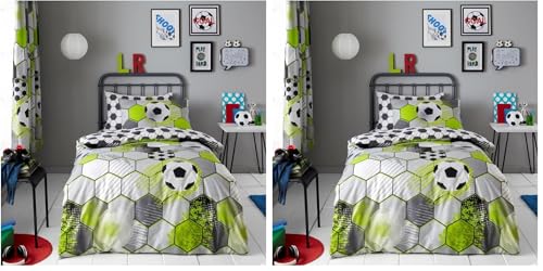 GC GAVENO CAVAILIA Football Duvet Cover Set (135 x 200 cm), Reversible Geomtric Kids Bedding Sets With Pillowcase, Polycotton Quilt Cover Single Bed, Soft Comforter Covers, Green (Pack of 2)