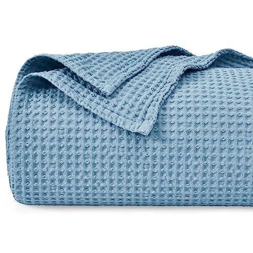 PHF 100% Cotton Waffle Weave Throw Blanket 50"x60" -Lightweight Washed Soft Breathable Blanket for Adults and Kids-Great Blanket Layer for Couch Bed Sofa - Dusty Blue