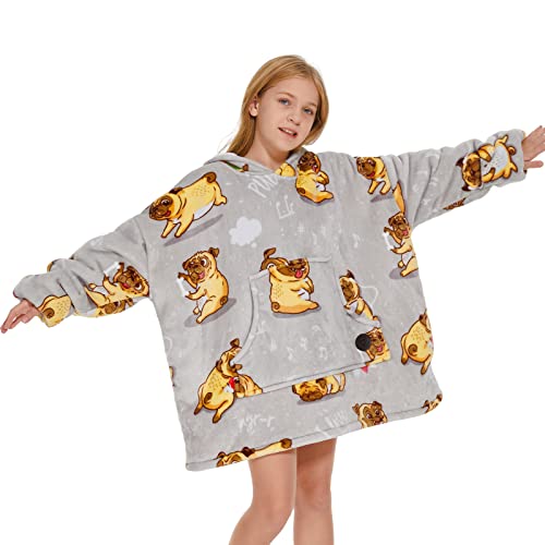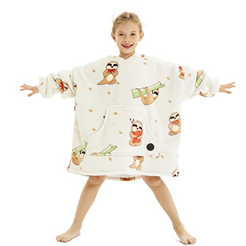 THREE POODLE Oversized Blanket Hoodie for Kids, Sherpa Fleece Wearable Blanket Sweatshirt for Girls Boys, Warm Soft Cozy Hooded Blanket Kids, One Size Fit All