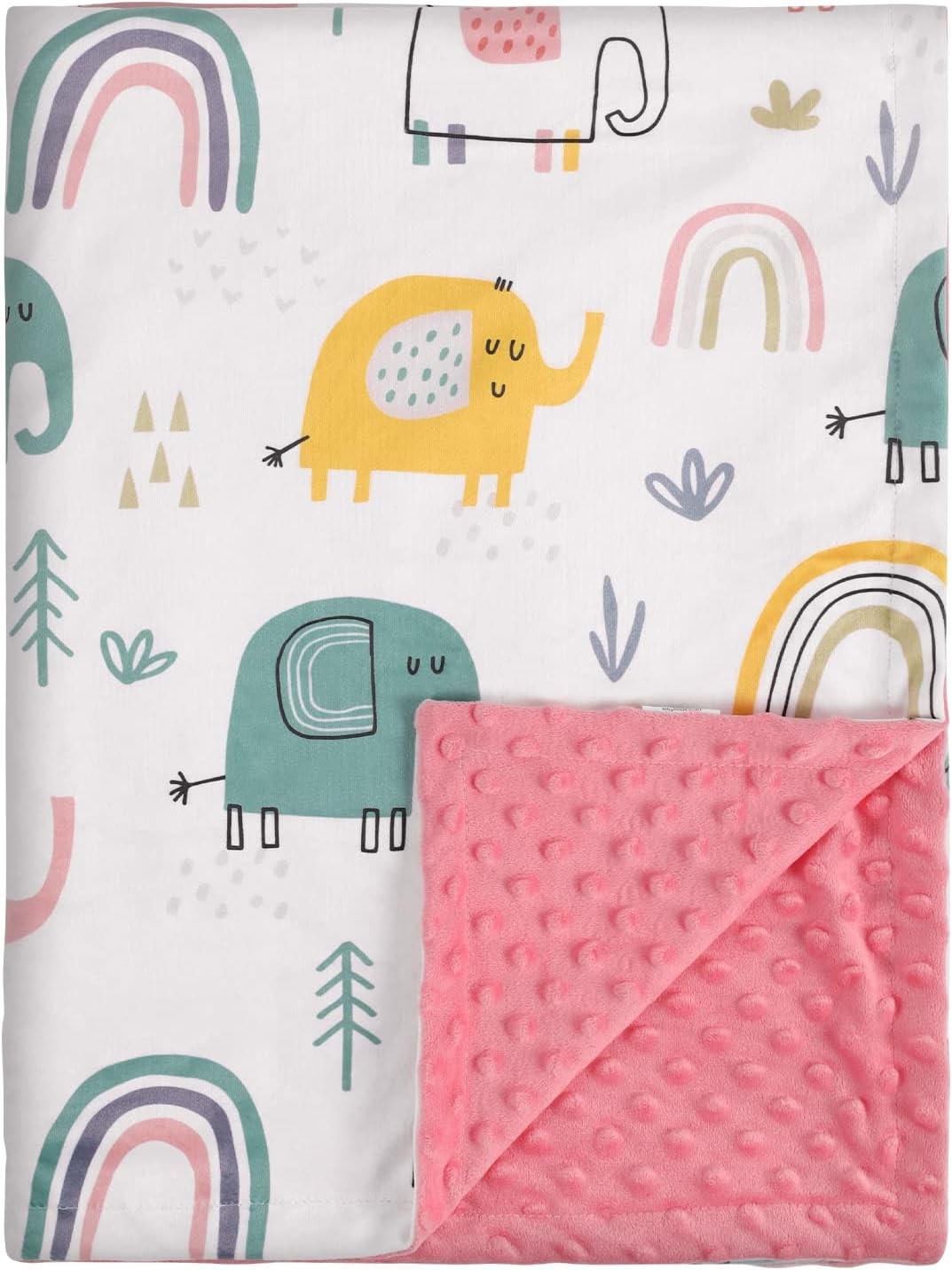 Soarwg Kids Baby Blanket Newborn Gifts, Soft Plush Blankets with Dotted Backing, Oeko-tex100, Essentials for Unisex, Toddlers, Boys Girls 75x100cm (Rainbow, Elephant)