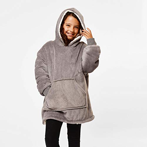 Sienna Kids Hoodie Blanket Oversized Ultra Soft Plush Sherpa Fleece Wearable Warm Throw Cosy Pull Over for Boys Girls Children - Charcoal Grey