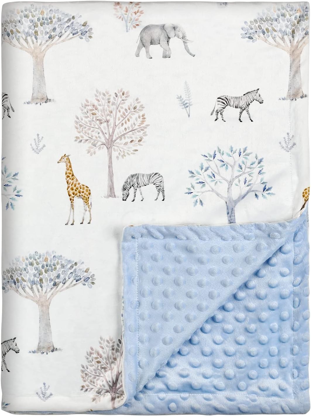 Soarwg Kids Baby Blanket Newborn Gifts, Soft Plush Blankets with Dotted Backing, Fleece Fabric Essentials for Unisex, Toddlers, Boys Girls 75x100cm (Giraffe, Elephant, Zebra), Blue Giraffe (SOD0018)