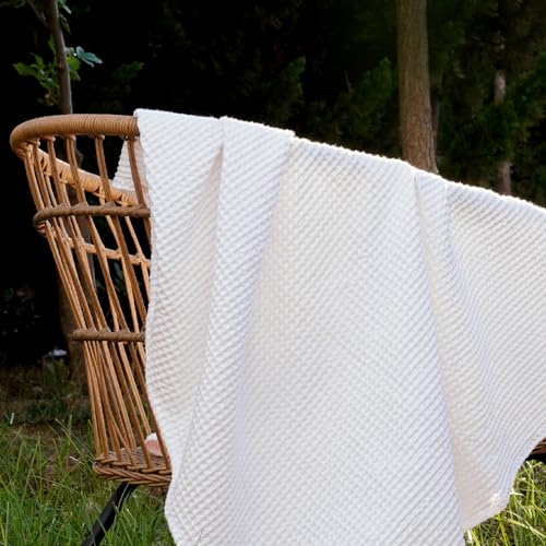PHF 100% Cotton Waffle Weave Throw Blanket 50" x 60"-Lightweight Washed Soft Breathable Blanket for Adults and Kids-Perfect Blanket Layer for Couch Bed Sofa-Elegant Home Decoration- White