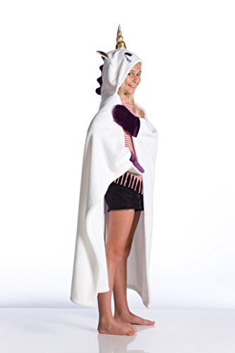 Kanguru Unicorn Fleece Hooded Blanket for Girls and Boys, Robe, Comfy kids fluffy throw blanket, Gift idea, Perfect for Sleepovers, Hood with Horn 100 x 130 cm (39x51 inches) White Unique, one size