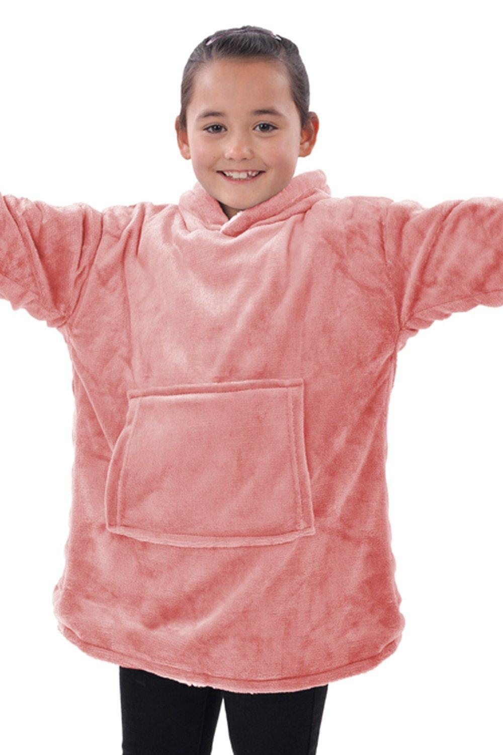 Sienna Kids Oversized Hoodie Blanket Ultra Soft Plush Wearable Sherpa Fleece Warm Throw Blanket Cosy Sweatshirt, Kids - Blush Pink