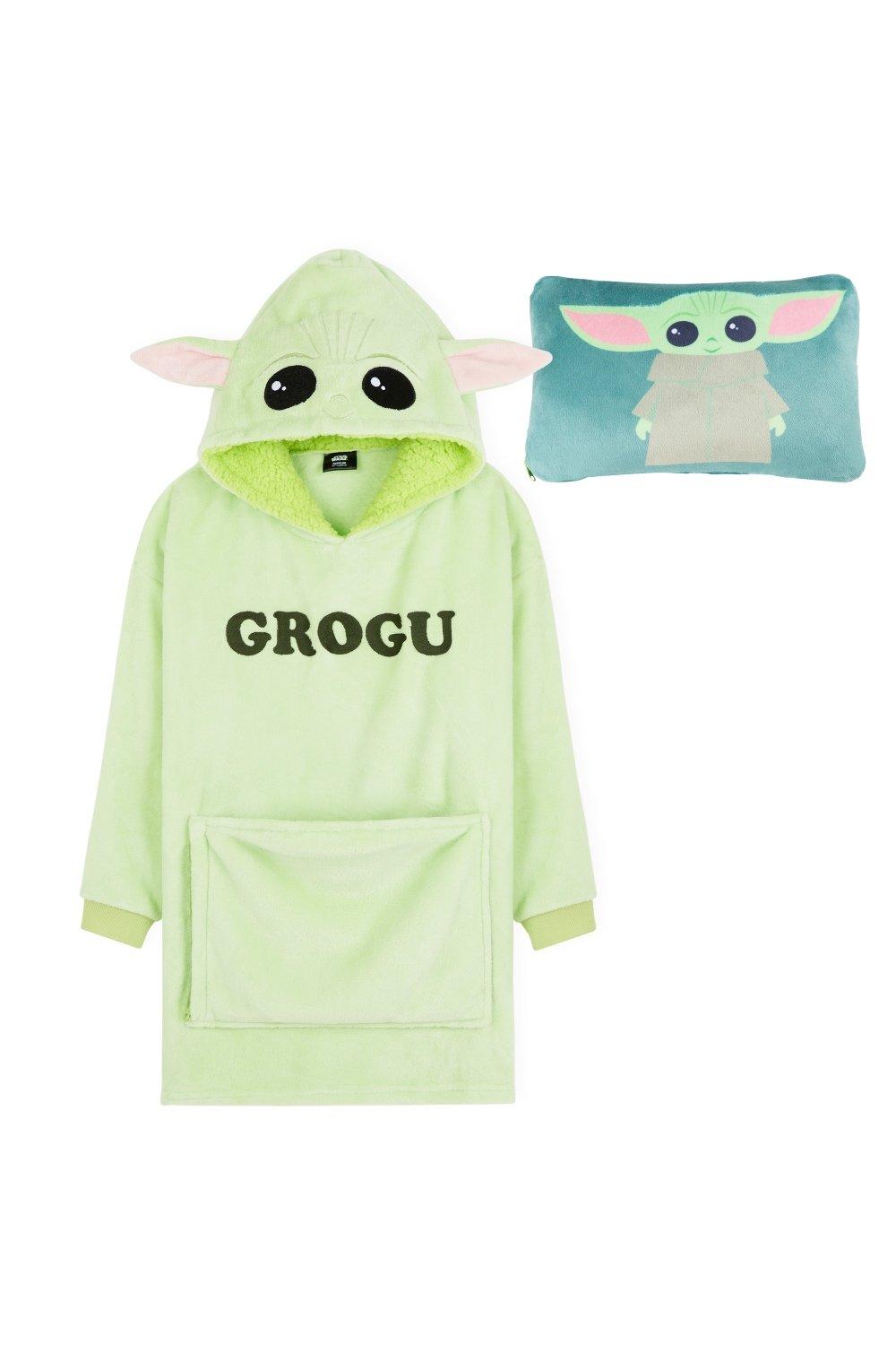 The Mandalorian Baby Yoda Kids Hoodie Blanket And Cushion 2-In-1