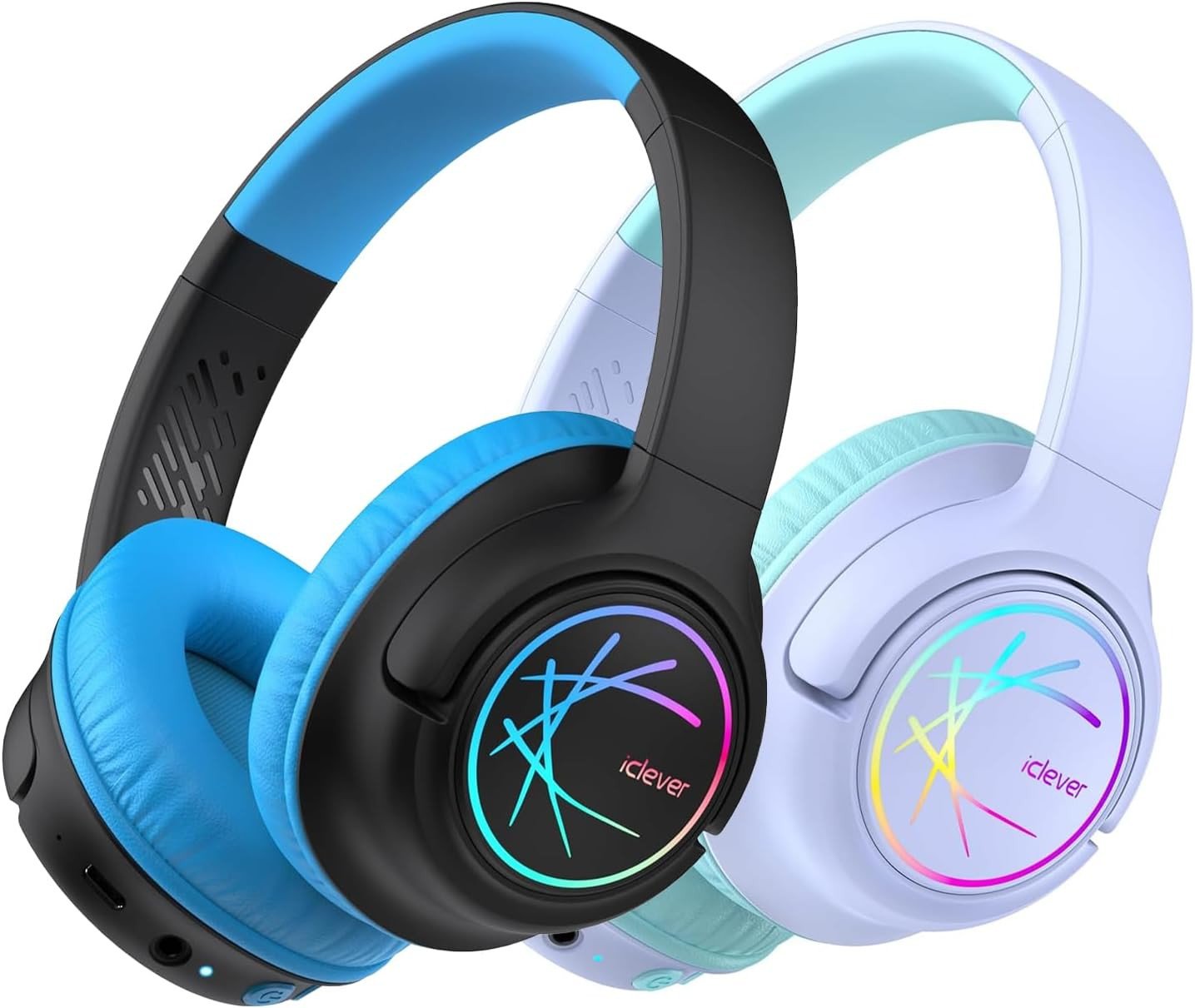 Iclever 2 Pack Kids Bluetooth Headphones with LED Lights, BTH18 Safe Volume 74/8
