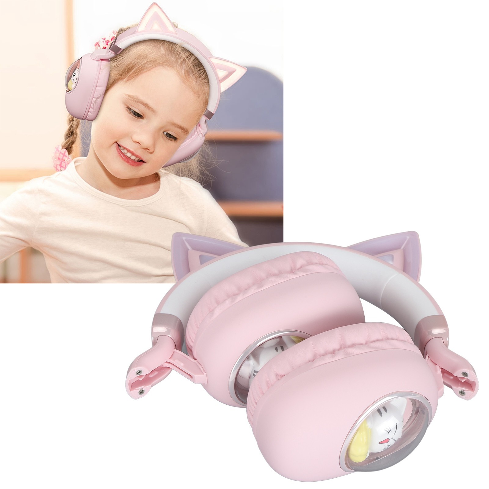 Usoun Kids Headphones,Cat Ear Led Light Bluetooth Kids Headphones with Mic,Girls Headphone Wireless,TF Card,3.5mm Audio,Wireless/Wired Foldable Kid On Ear Headphone for Boys Girls Adults (Pink)