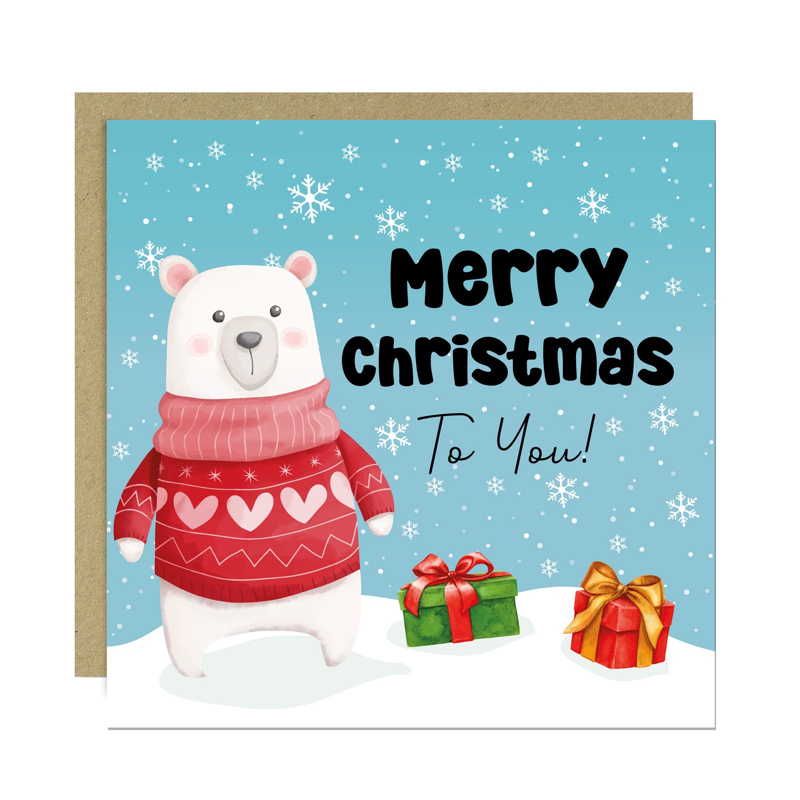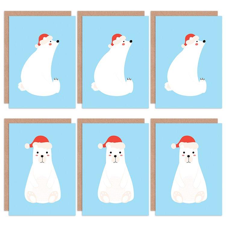 Christmas Cards Cute Polar Bear Kids Santa Hat Blank Greeting Cards With Envelopes Pack of 6