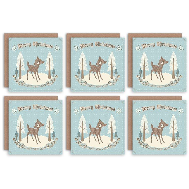 Christmas Cards - Vintage Baby Reindeer Kids Set Xmas Blank Greeting Cards With Envelopes Pack of 6