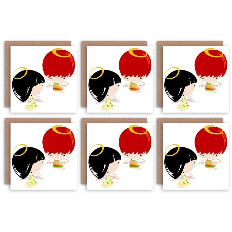 Christmas Cards - Cute Angels Kids Set Blank Xmas Blank Greeting Cards With Envelopes Pack of 6