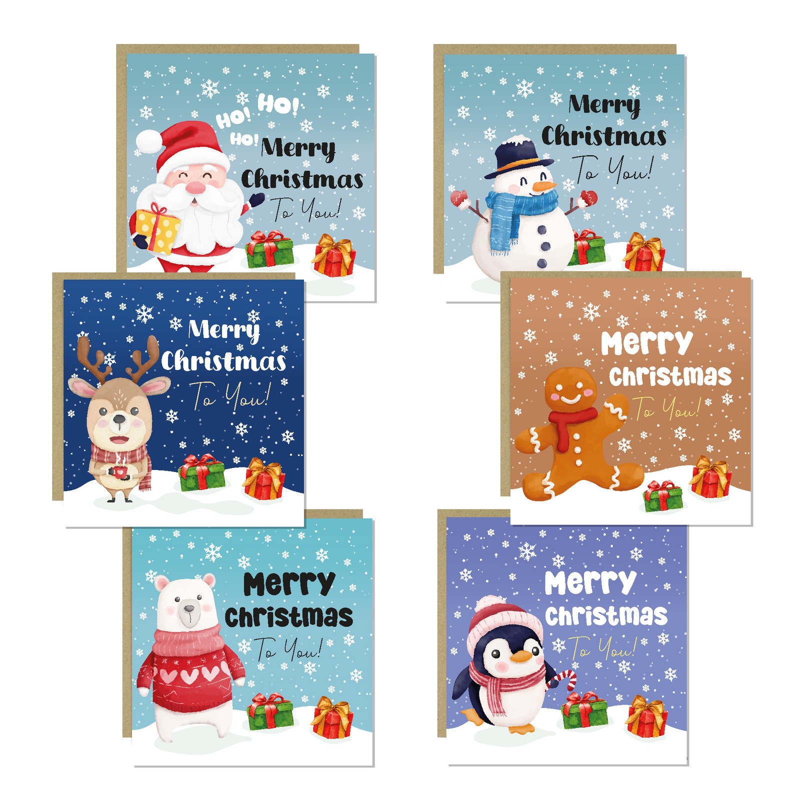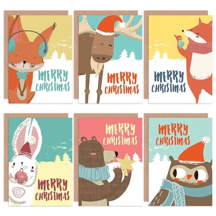 Christmas Cards Cute Baby Winter Animals Kids Set Blank Greeting Cards With Envelopes Pack of 6