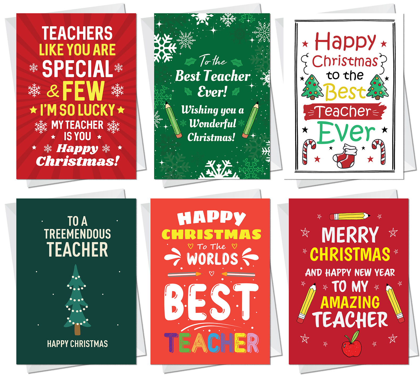 6 Cute Childrens Kids Christmas Cards Pack For Teachers Thank You Cards