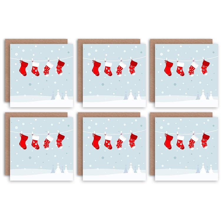 Christmas Cards - Cute Christmas Stocking Kids Set Xmas Blank Greeting Cards With Envelopes Pack of 6