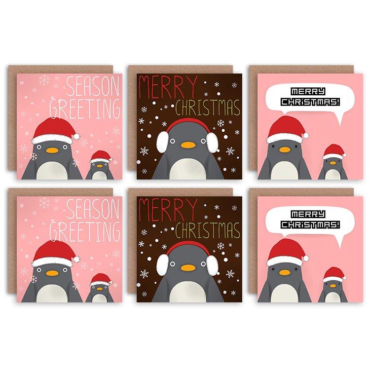 Christmas Cards Cute Penguin Santa Hat Kids Set Blank Greeting Cards With Envelopes Pack of 6